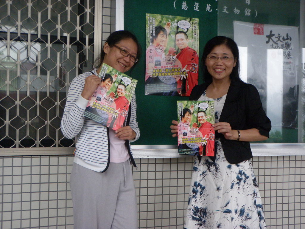 990924原人喇嘛頭號粉絲簡芝玉來華梵大學找雪媽,順便拿第一手的海報與簽名卡