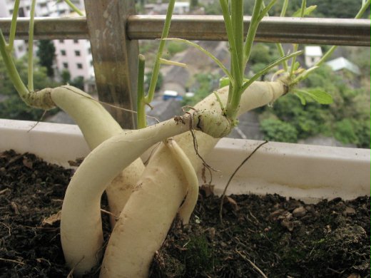 圖二:女兒撒種,媽媽移植的白蘿蔔