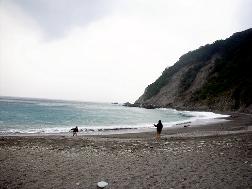 南澳海邊有一座孤山,因為它有一個橢圓形的外貌,看起來很像是一隻烏龜,所以當地人就稱它叫龜山了。龜山的下方有一個名字很文雅的小漁村叫朝陽村,村中的居民並不多,自交通發達以來龜山上也建設了健康步道,名之為朝陽步道,可能來到龜背上看太平洋的日出最有意義故有此名。每逢假日來這裡登山的人不少,也多少提高了這一小村熱鬧的氣氛也帶來了一些商機。龜山的背面峭壁臨海,是蘇花公路所經清水斷崖的一部分。陡崖之下是一片潔淨的沙灘,因為交通閉塞平時到這裡遊玩的人不多,再加上漁港建立以後高大的防波堤阻擋了去沙灘的通路,使原來很少人知道的山後世界更加隱密,所以我才以為這裡該被稱為隱藏於海岸深處角落裡的樂園。其實這裡的風景區並不是美得讓人咋舌,夠不上被稱讚為「樂園」二字,真正能夠使人驚訝的是那裡奇形怪狀的岩石了。