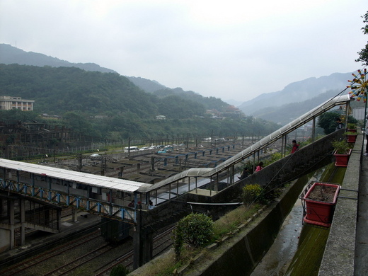 這是一件很新鮮的事,起碼對我來說,因為我從來沒有見過有這麼多的貓在村子裡的巷弄間,庭院裡家屋前或坐或臥或悠閒的漫遊著,貓成了這個村子中的貴族,家家戶戶無不以養貓為樂,是一個以貓為圖騰的社區。春節期間家中的少輩們突然心血來潮要去基隆河上游淘金,想嘗試一下先民們曾經做過的既艱苦又浪漫的生活情調,但很令人失望的是天突然下起雨來了,而且這雨勢越來越大,於是大夥不得不到猴峒火車站避雨。車站位於狹窄的山谷底部河階上,下方是清可見底基隆河,所以只能建築在空間有限的河階平地上,也許是這個原因,它可能是全台灣最為奇特的一座火車站,不但老舊而且只看那座天橋就可拿來當做馬戲團使用的道具了,不但斜度特大而且通道又是幾乎僅能通過一個人的寬度,在一個個能使人提心吊膽的金屬架上,已經可以見到有不少隻貓在此表演牠們的特技了。