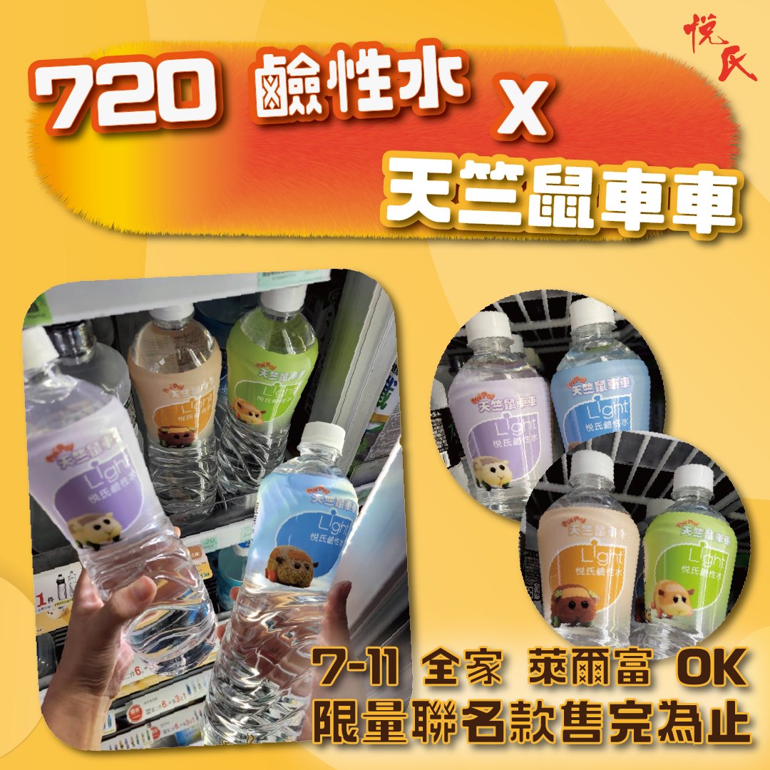 悅氏720鹼性水 x 天竺鼠車車聯名款