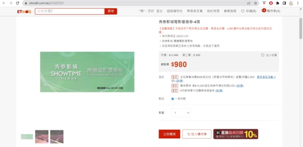 不過四張電影票的市價已超過一千元算不錯了,且又因員工價比網路價更省了許多!