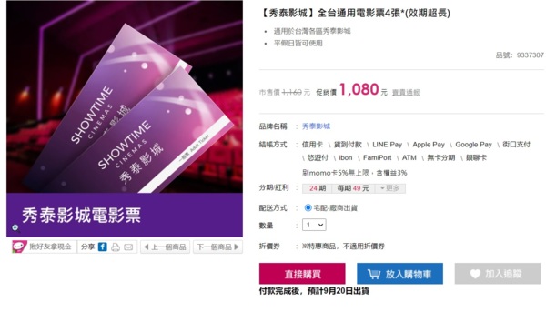 我猶豫很久怎麼把一千元一次花掉,結果買了不到一千元的四人電影票餘額也只能在裡面,只是不知道餘額會不會過期!