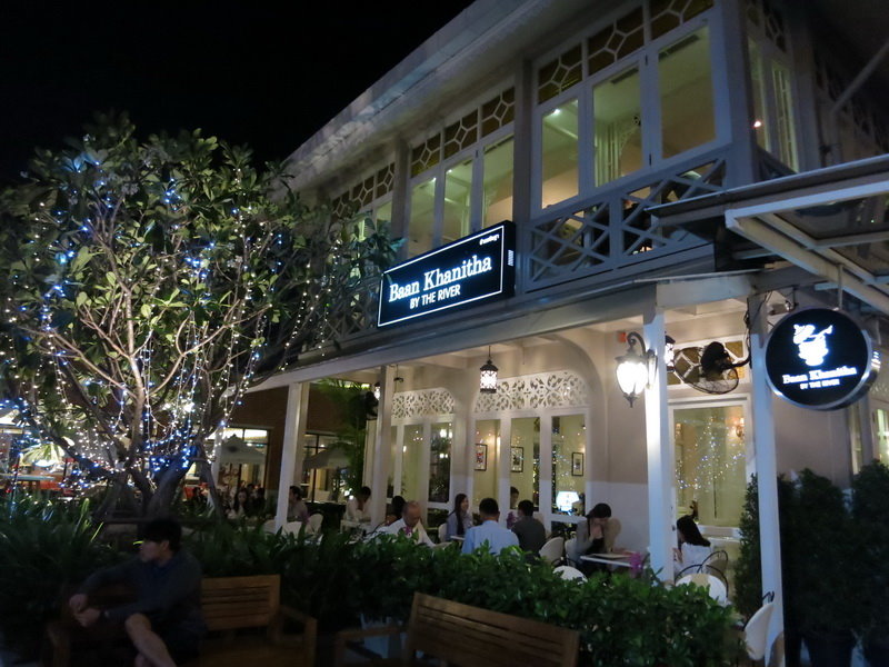 晚餐最後到Baan Khanitha by the river,2012年10月才開幕,二樓式的白色建築是由百年船倉改建而成,樸實不奢華;不過,我們都較喜歡蘇坤蔚的分店~質感較好。