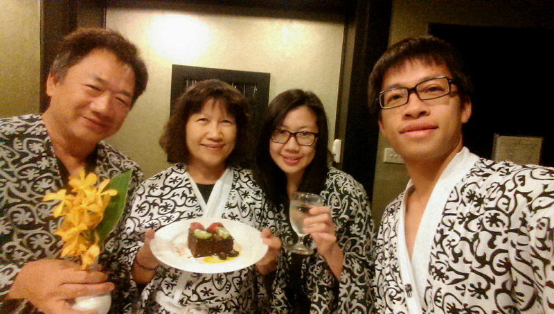 吃飽坐車回悅榕庄banyan tree休息,先去頂樓Moonbar參觀,大夥決定明天來此歡度耶誕夜及生日;約11點時,女兒敲門送來生日蛋糕真是個驚喜,這些年來我生日時總只剩夫妻倆過聖誕夜,今年真是太幸福囉!