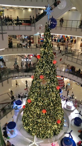 參觀結束,約5點半返曼谷,在世貿中心Central World Plaza附近下車,所以在3家百貨公司閒逛,幫梅寶貝買衣服,順便欣賞聖誕樹。