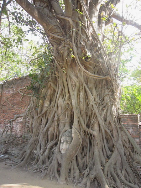聞名世界的” 佛頭”~聽說當年緬甸軍入侵時砍下佛頭後,把祂放在無花果樹下,突然神蹟出現,無花果樹就把佛頭纏繞起來,而緬甸軍也因此被嚇跑了!(版本太多,至今仍無從考據。)