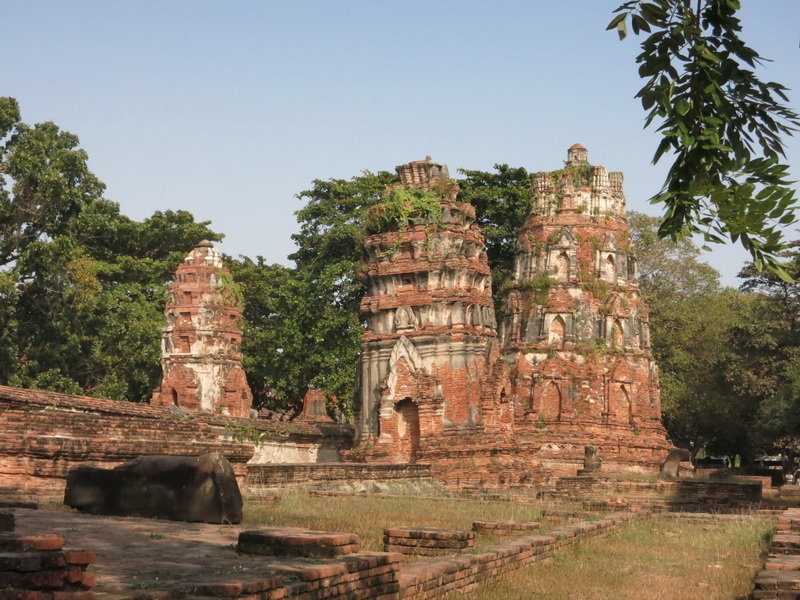 因為位於大城歷史公園內,所以佔地其實非常的廣大,只可惜裡頭都沒有一個佛塔是完整的,到處都看得到戰火洗禮過的痕跡,戰火不單只有洗禮佛塔,就連佛像都是無一幸免殘破不堪。