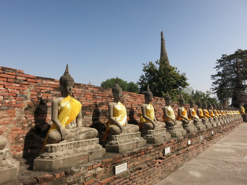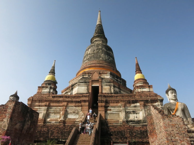 12/23七點半離開Aloft,坐計程車到banyan tree放行李,再到chit Lom (E1) AK House 9點報到,參加大城(Ayutthaya)~世界遺產深度之旅。首站是崖差蒙空寺(Wat Yai Chaimong)。崖差蒙空寺建於西元1357年,是納麗孫王時期,為紀念他駕乘象擊退緬甸軍入侵的壯麗戰役而修建的,是大城府最古老的建築。