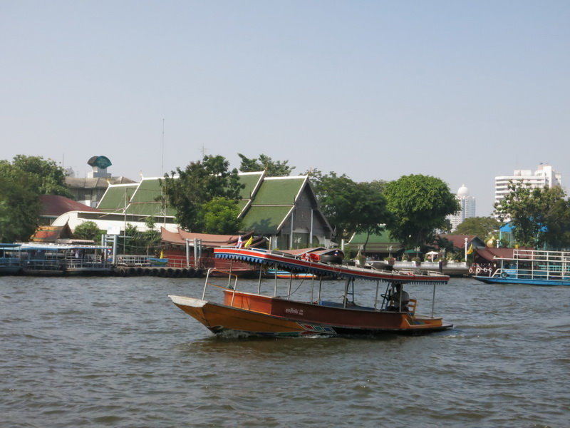 坐船回塔克辛碼頭,排隊等待不知什麼顏色的船班,沿著昭披耶河景色怡人,到9號的Tha Chang 碼頭下船。