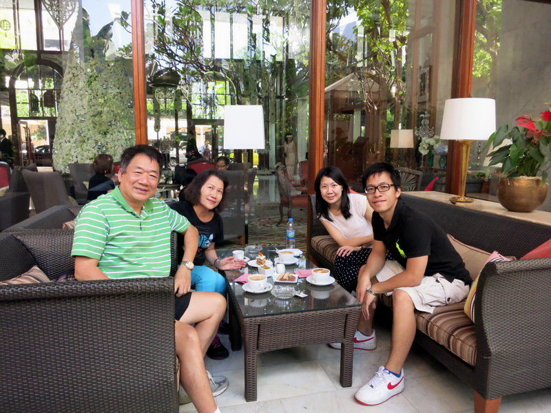 我們在戶外庭園坐著喝咖啡吃點心,享受著東方文華的豪奢氣息。
