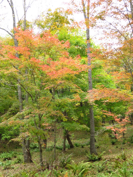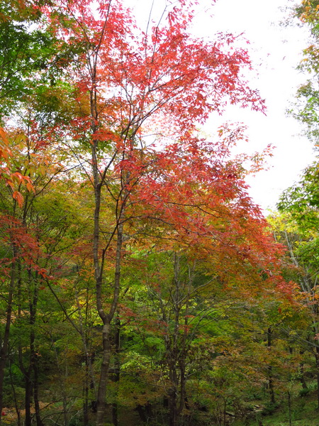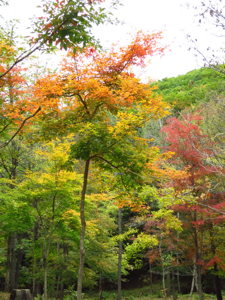 還有的樹種形不成紅葉,因此仍然碧綠。所以形成了色彩斑斕的獨特景觀。