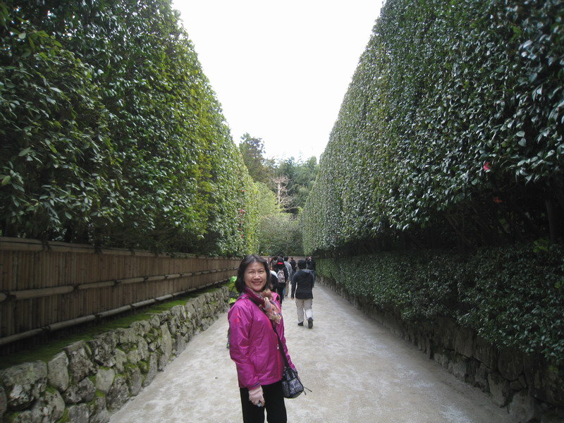 從慈照寺寺門到庭園的入口處,道路兩邊是高聳的綠籬,保存有圍牆遺迹,被稱為「銀閣寺垣」。