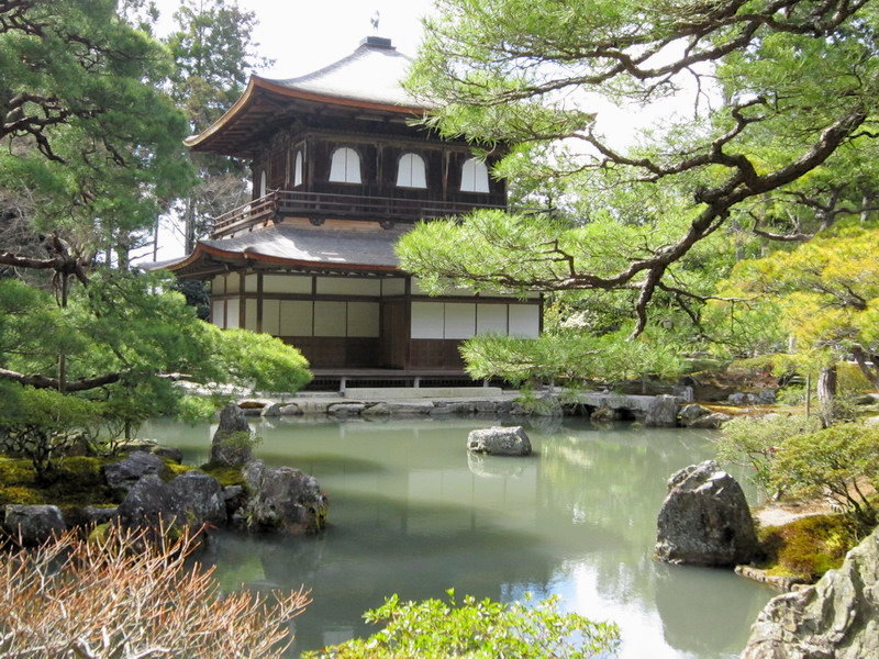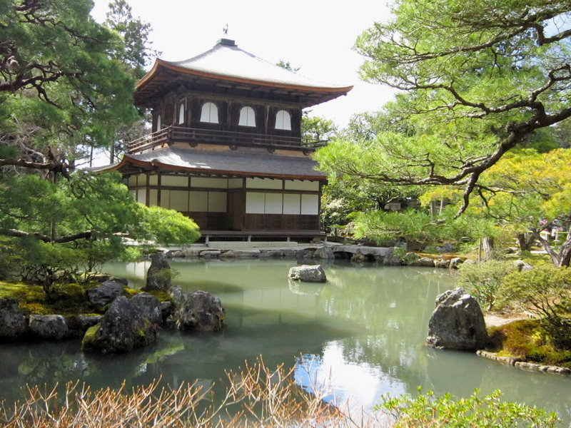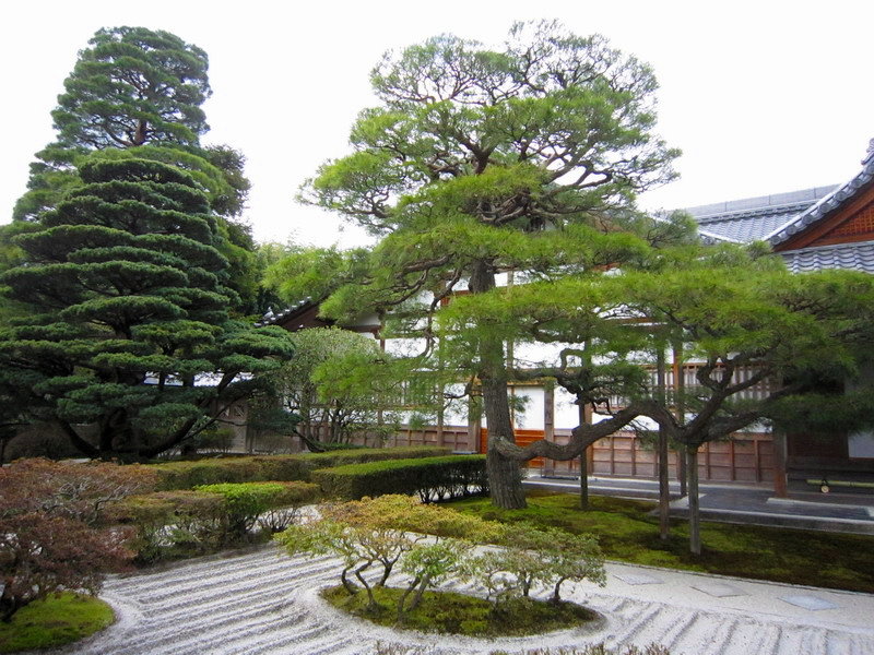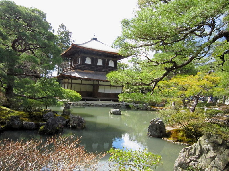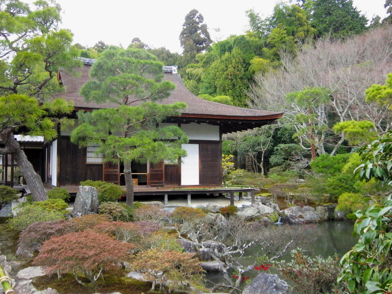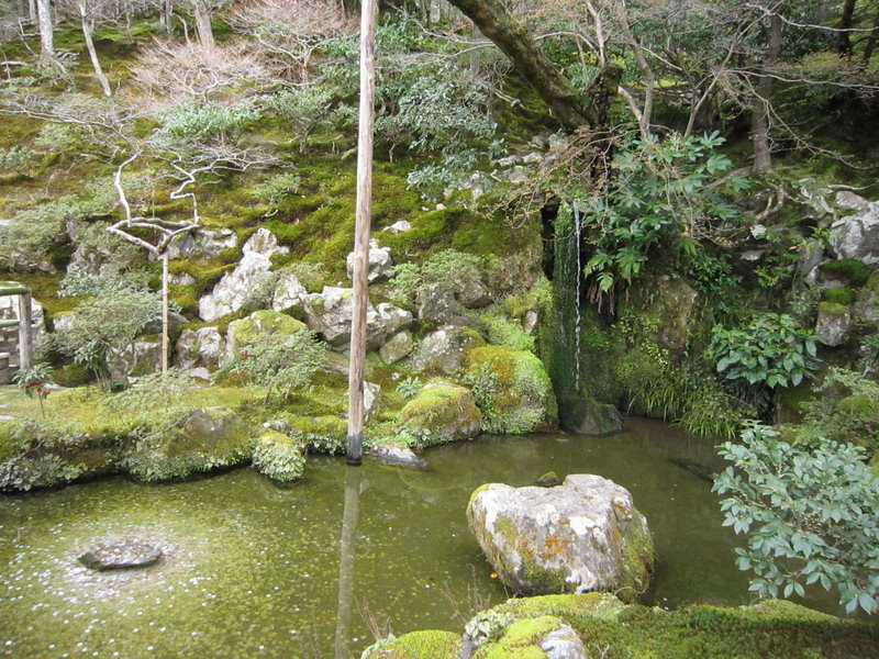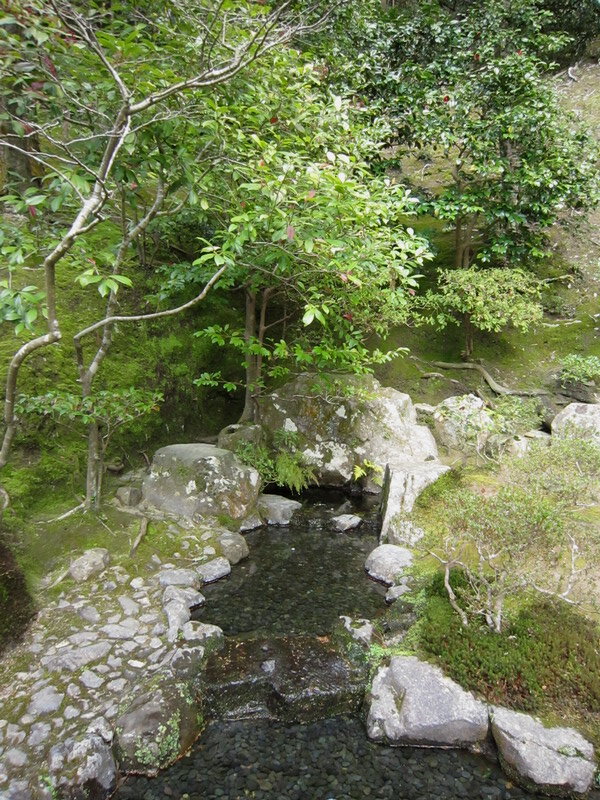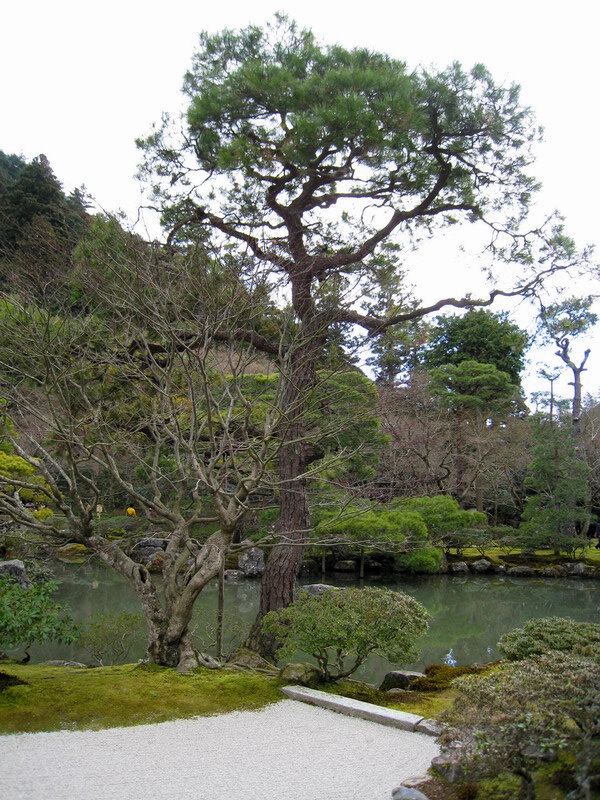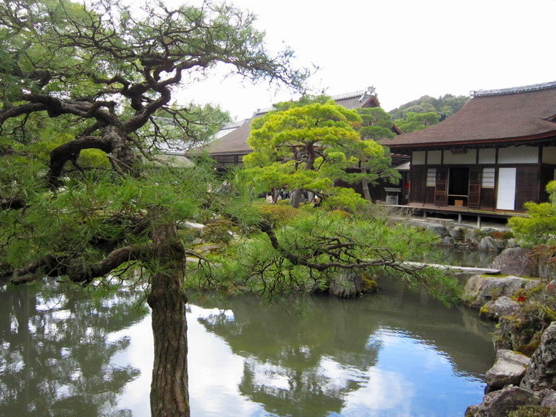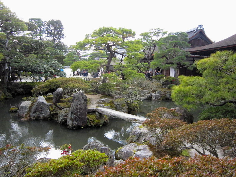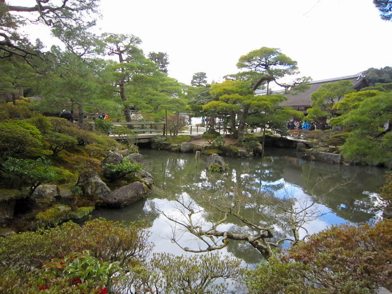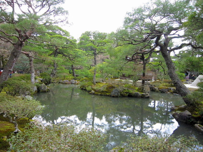 銀閣寺的庭園除了銀沙灘外,就是以錦鏡池為主的池泉迴遊式庭園;這庭園雖小,可是種植了不少形狀奇特的松樹,是一座小巧精美的庭園。