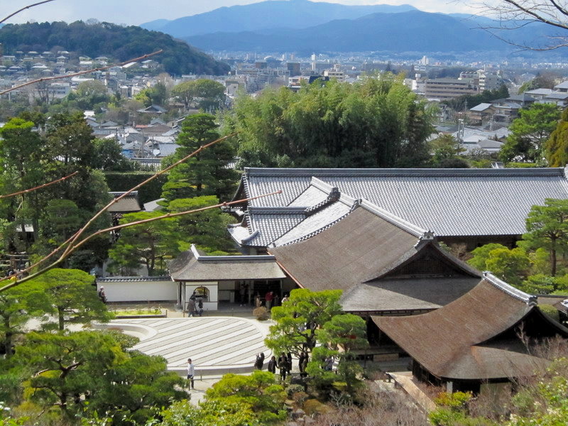 順著庭園間的小徑,一路散步到後山,不只欣賞到園匠用心栽培的花木,還有閃爍在陽光下的苔園,還可以一覽整個銀閣寺的全景呢!
