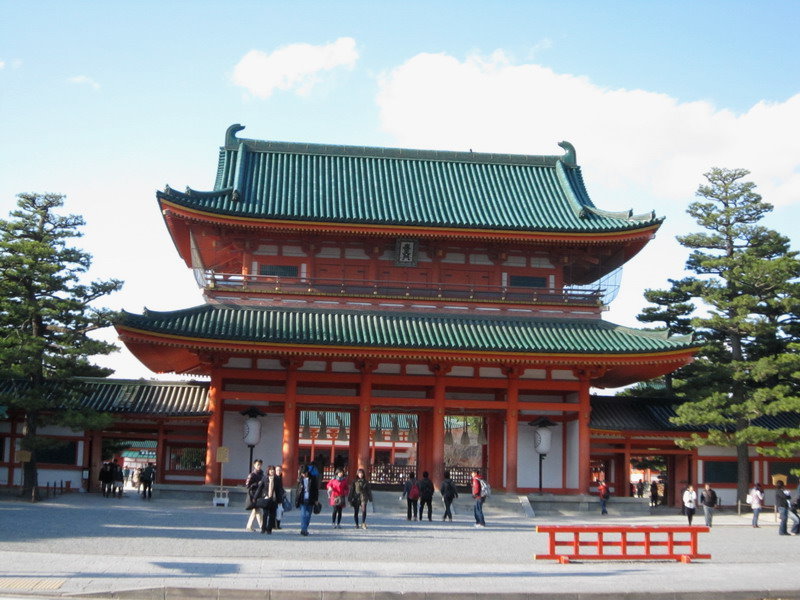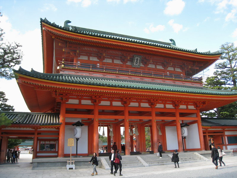 平安神宮(へいあんじんぐう)建於較近期的1895(明治28)年,為紀念日本古都平安遷都1100周年重建。主要是為紀念統治京都的最初和最終任天皇,即桓武天皇和孝明天皇。(2012.4.1)