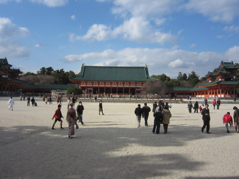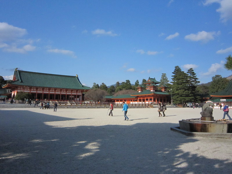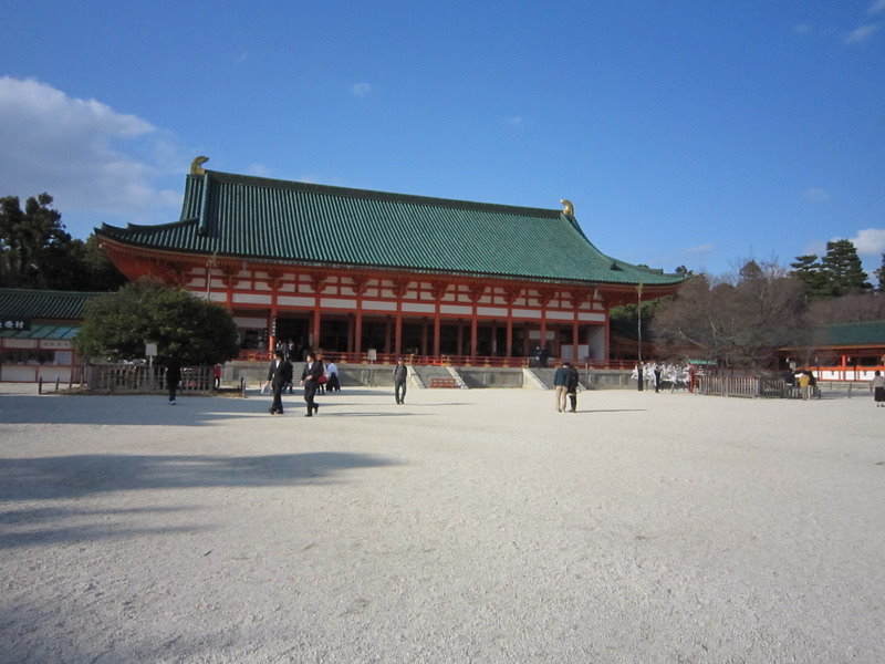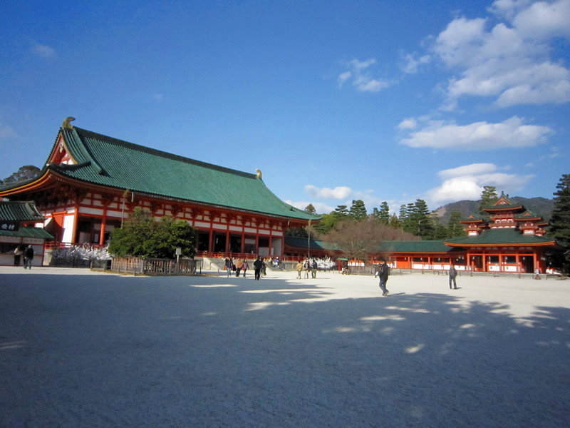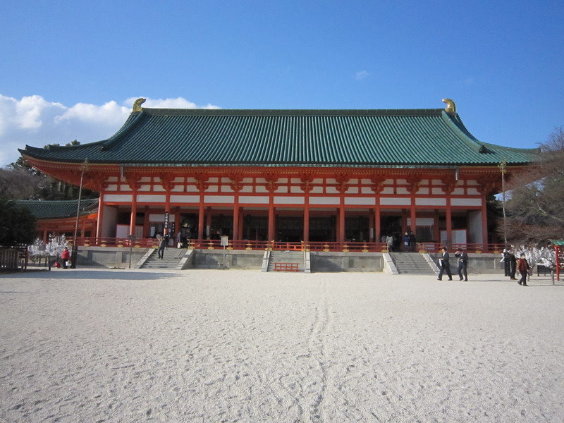 遍地白沙與紅柱碧瓦的建築為平安神宮的最大特色。