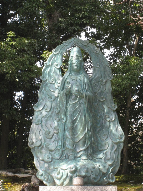 天龍寺飛雲觀音像,因其旁邊為二次大戰犧牲的神風特攻隊等日軍慰靈地,藉立此觀音保佑全世界飛行員及飛機等,觀音手中捧有十字架,象徵超越佛教護佑全人類。