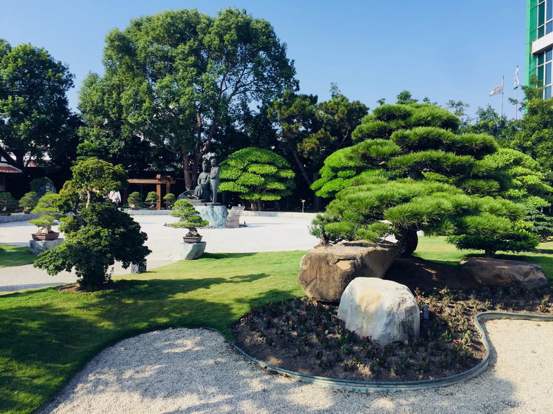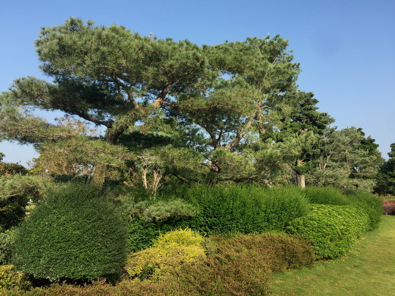 整個園區都是綠油油的松柏,經過精心修剪,每一株松或柏都身價匪淺。