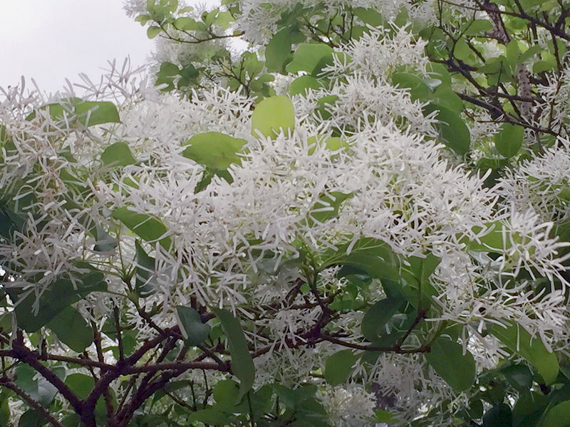 流蘇開滿白色小花,如鋪雪般的美麗,實讓人嘖嘖稱奇。