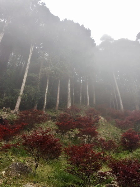 居然還看到有一抹紅葉,4月至9月正值「紫葉槭」花期,夏天也能賞楓紅,所以這應該是紫葉槭…..