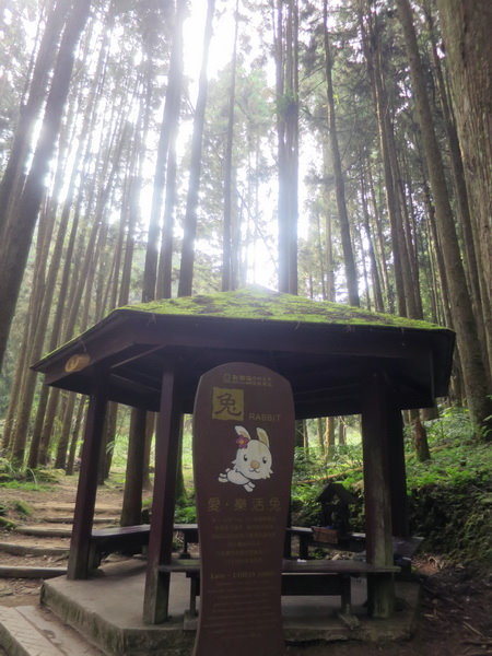走累了也能找到涼亭休息;杉林溪森林遊樂區到處用十二生肖立板當裝置藝術。