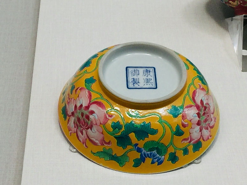 康熙時期琺瑯彩製程:首先,在景德鎮燒好素胎。接著,運至紫禁城交內務府下的如意館(畫院作坊),由宮廷畫匠按照康熙皇帝的旨意進行繪製。最後,送至養心殿以攝氏700度左右低溫燒製而成。康熙琺瑯彩多署紅、藍色楷書「康熙御製」雙框方款,在「御」字所含「天子」之意下,特別能呼應製作背景中皇帝主導推動的成份,展現作品蘊含的帝王審美意趣。