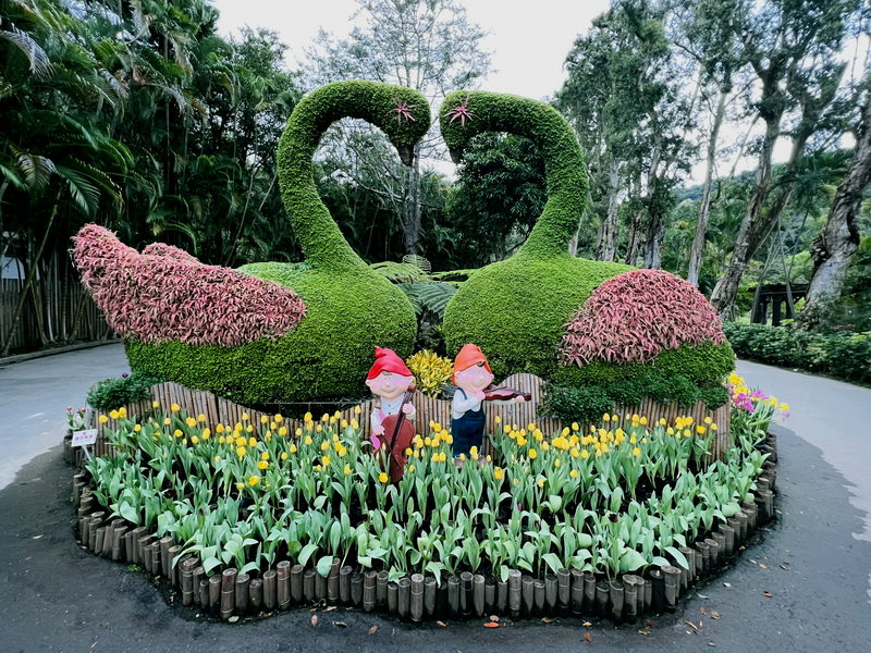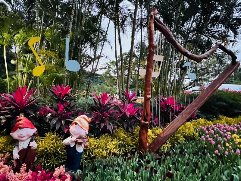 菊展時將近7米長的五線譜與音符的大型綠雕,搭配彈奏小提琴與吹奏喇叭的綠雕樂手,加上可愛盆栽人物鼓手,組成「聽見花兒在歌唱」的交響樂團。