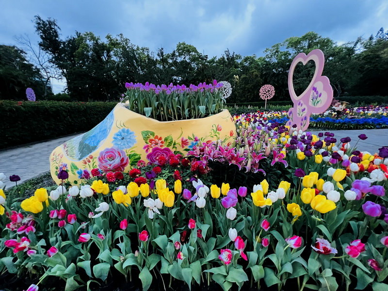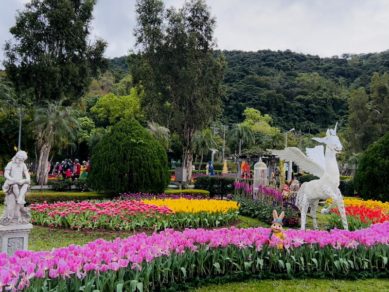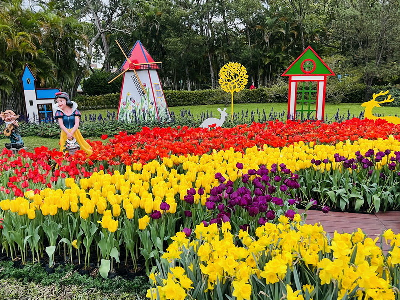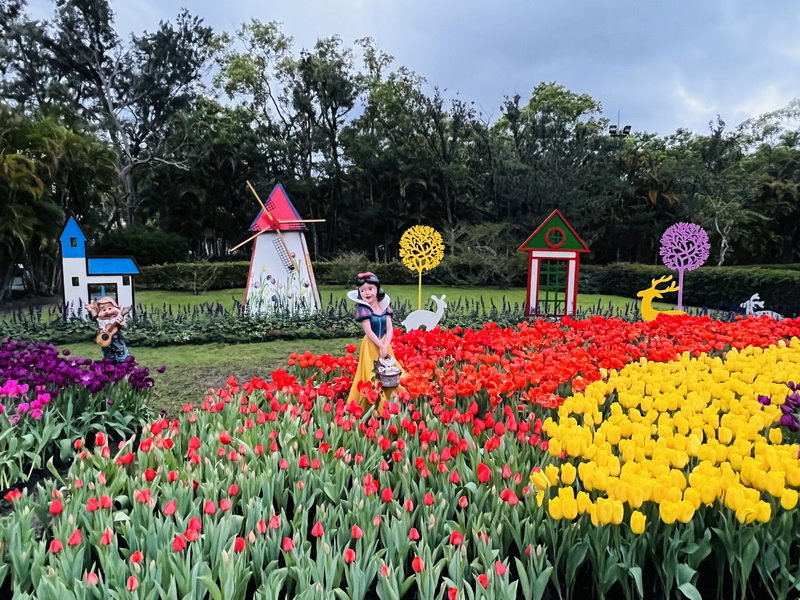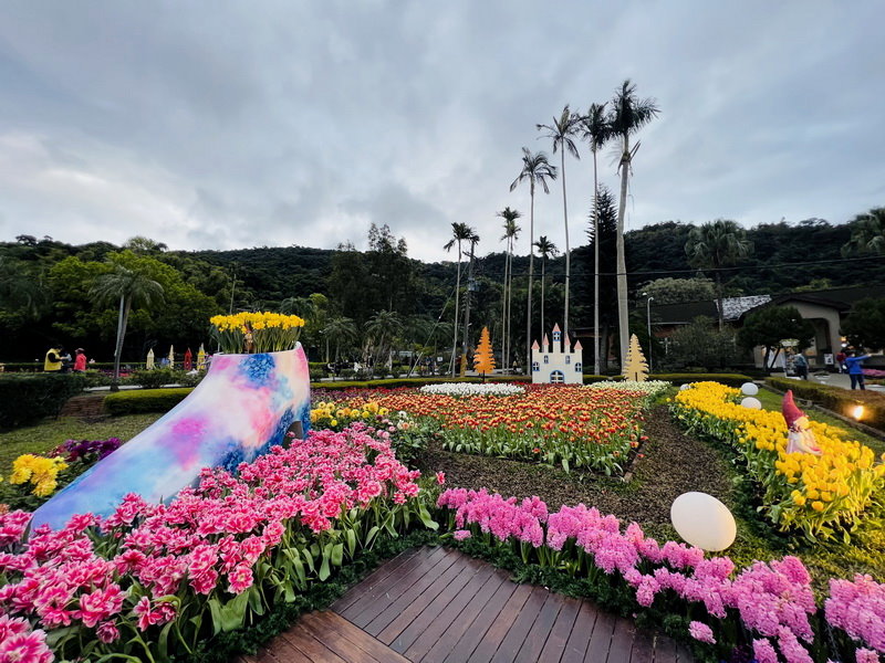 今年共有超過13萬株、20樣品種的荷蘭鬱金香、日本鬱金香,不僅數量是歷年之最,園內也規劃四大打卡展區「木鞋寓言」、「拇指姑娘」、「灰姑娘」及「竹取公主」等,美麗的花海搭配夢幻的情景,彷彿置身童話世界。