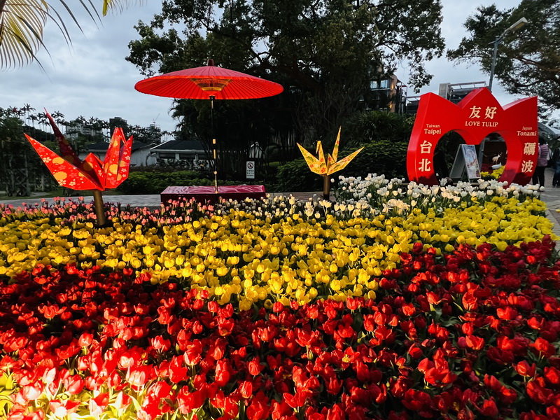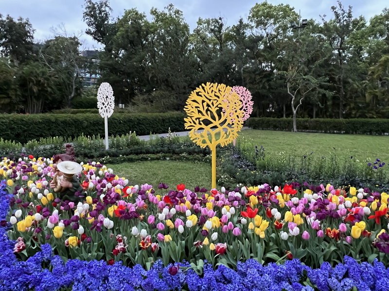 於音樂台前延續菊展的佈置,但部分花圃由鬱金香替換菊花。