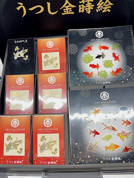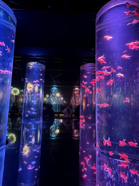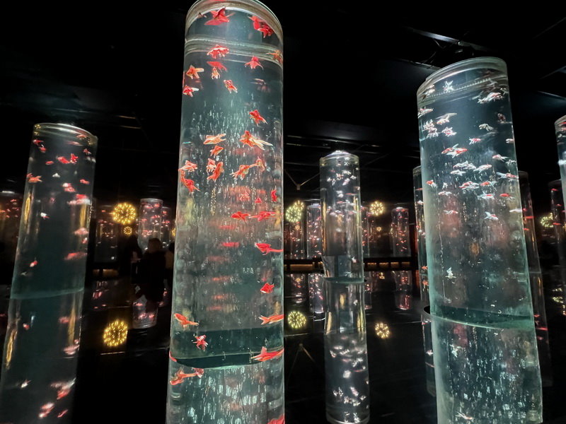 銀座藝術水族館內,金魚在燈光、音樂和香氣交織的空間裡悠游的夢幻世界,將江戶時代流傳至今的金魚觀賞文化,升級成現代藝術作品的新型態美術館。金魚多達70種,結合摺紙、屏風、花卉、楓葉、石燈籠等日式元素與聲光效果,宛如藝術般殿堂。