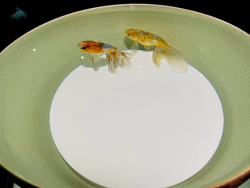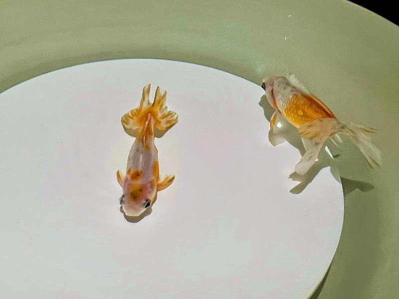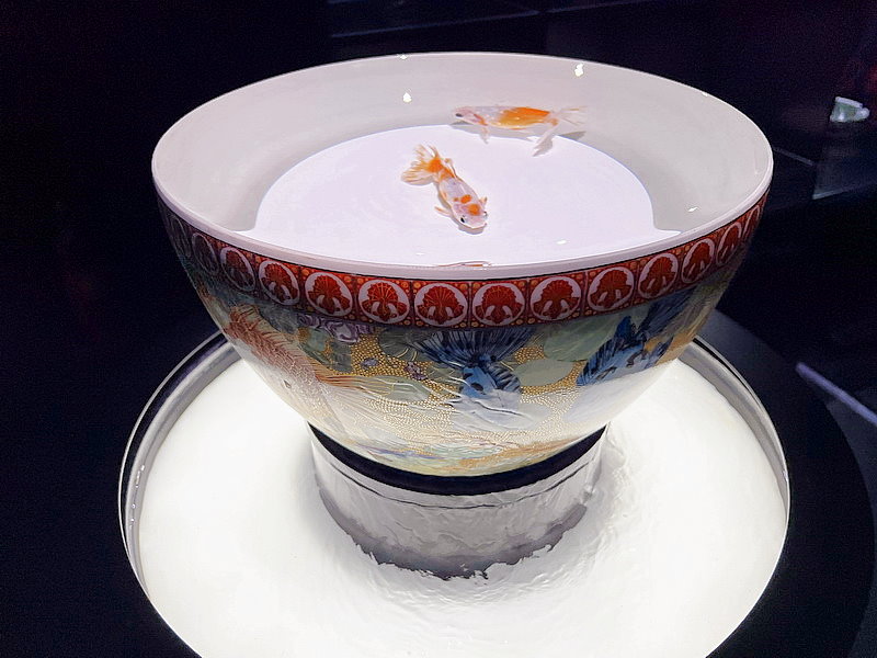 新金魚品評(A Show of Kingyo)是金魚文化的極致展示;這裡金魚品種多達100多種,用低矮的方缸呈現,每個方缸住著不同品種的金魚,並用不同的植物花卉點綴,像是一幅幅從上方欣賞的金魚畫作,可以停下來一個個近距離仔細品嘗,不同樣貌的金魚,讓觀者大開眼界。
