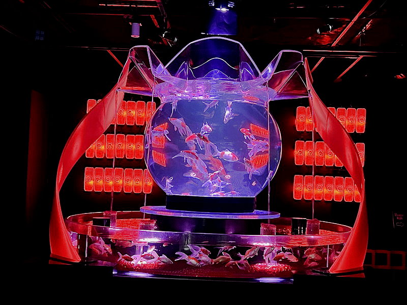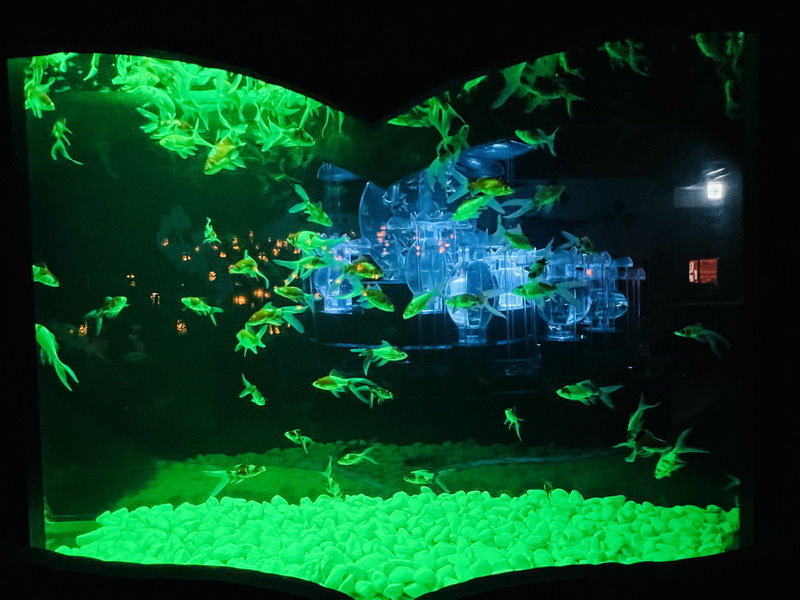走進金魚迴廊彷彿置身於無限的空間,展示了美麗的金魚在五彩繽紛的魚缸中翩翩起舞,完美地與音樂和諧一致令人陶醉。