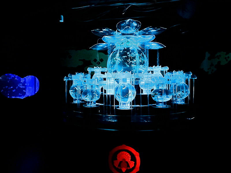 結合燈光、音樂與現代裝置藝術打造的特殊氛圍,讓展覽不僅僅只是普通展示金魚的水族館,融合日本傳統元素的造型魚缸、館內空間、燈光設計也都有各自的看點,真的是很特別的展覽,原來金魚可以這麼華麗登場,銀座藝術水族館也太厲害啦!