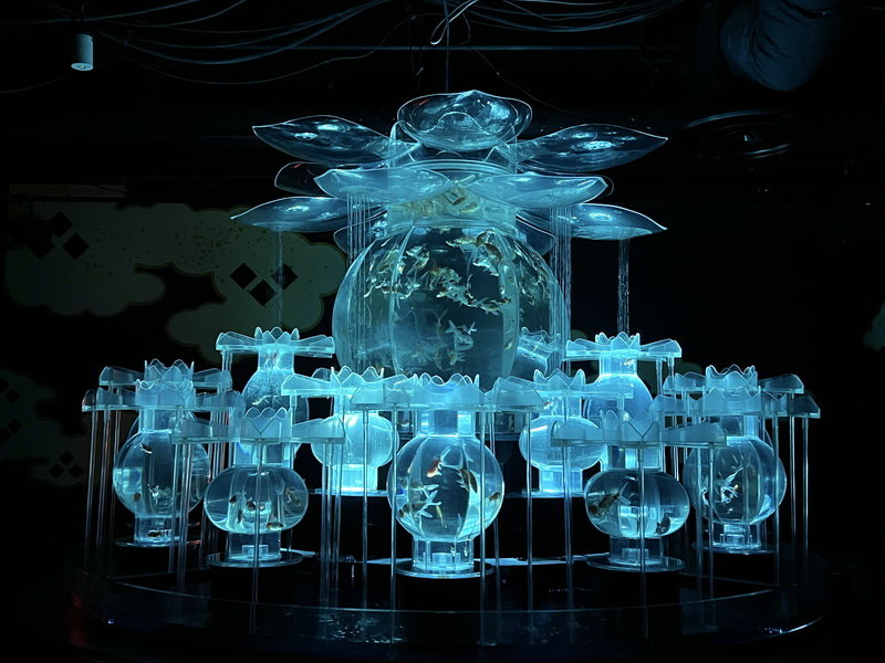 這裡展示的金魚品種多達70種,數千條金魚在精心設計的各款藝術魚缸裡優雅舞動。