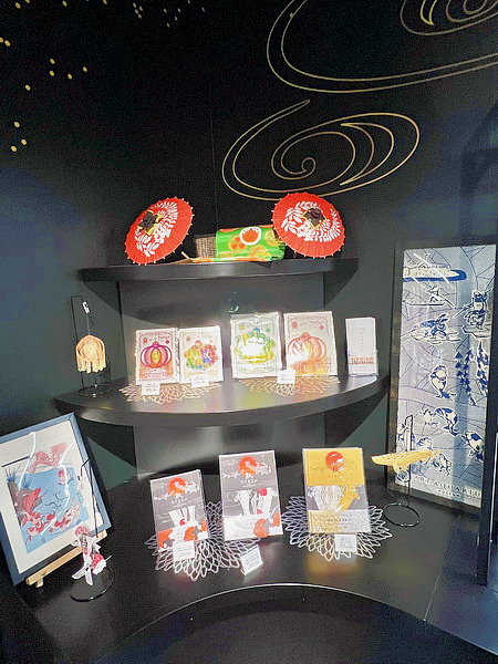 金魚藝術展的周邊商品很豐富,包含文具、飾品、伴手禮、雜貨小物,還有限量的金魚周邊商品如金魚玩偶,或是以金魚為靈感的藝術品和紀念品、吊飾、和創作者合作的衣服、包包等可以購買。