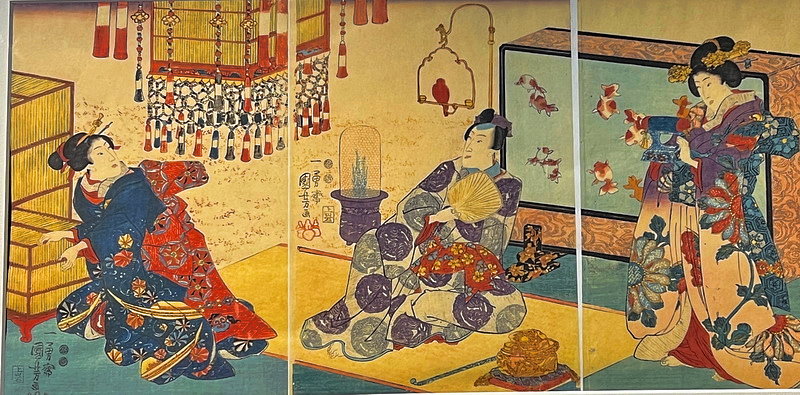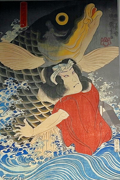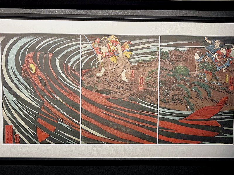 還可以欣賞江戶時代藝術家歌川國芳創作的一系列浮世繪作品,以金魚和鯉魚為主題,描繪出不一樣的平面藝術世界。