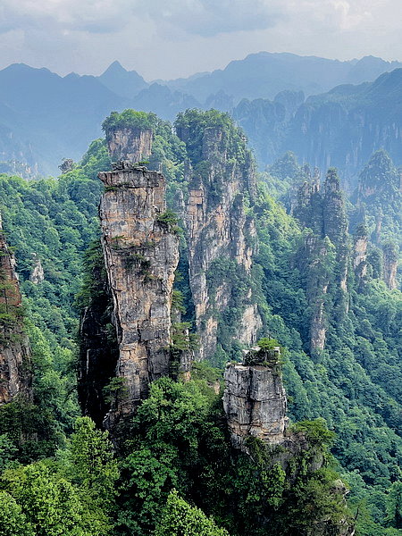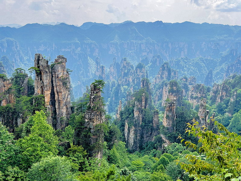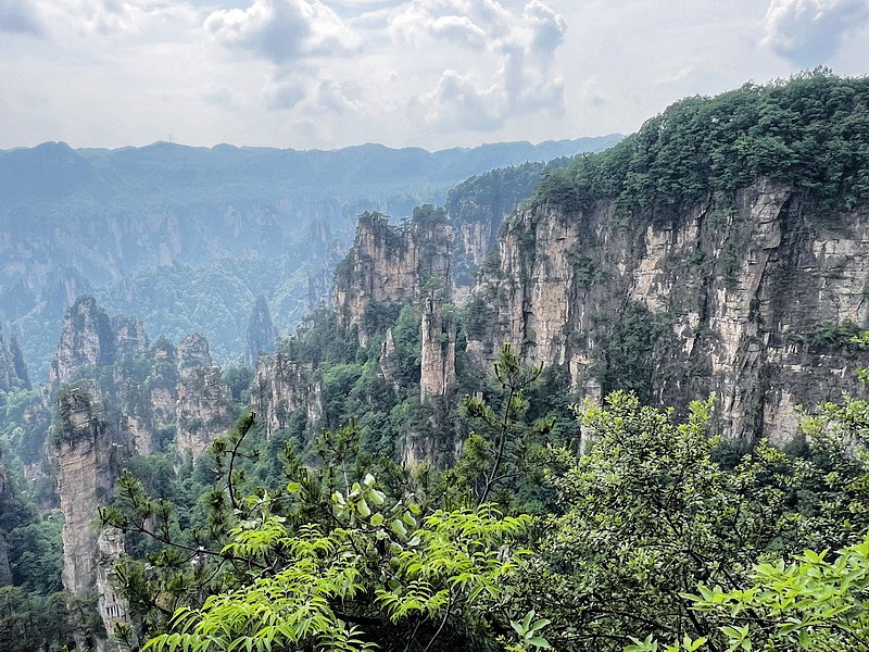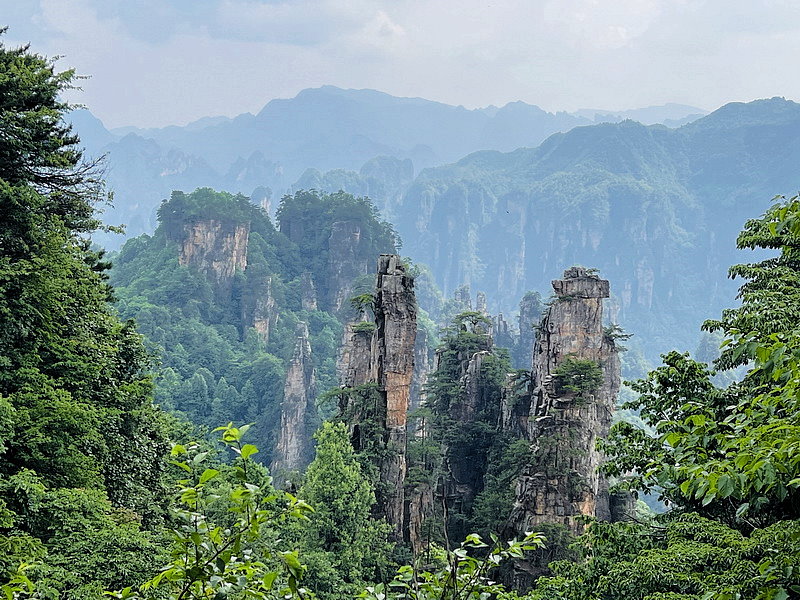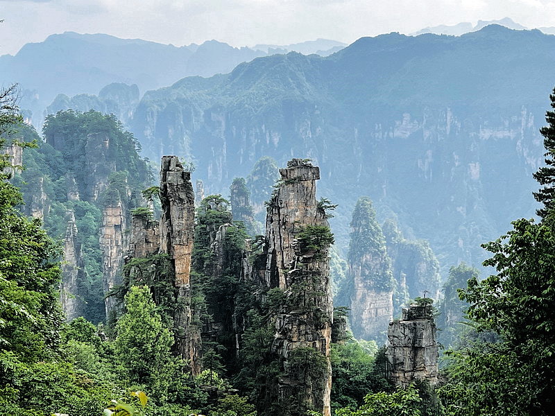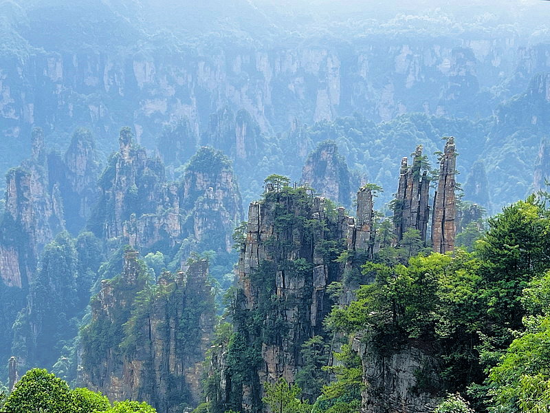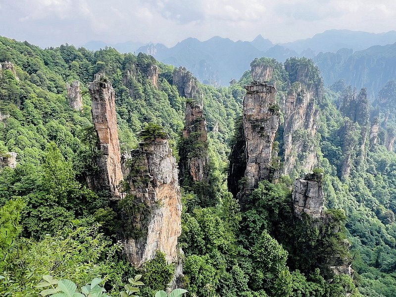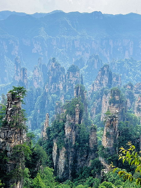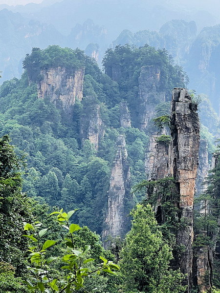 天子山遠處,層巒疊翠的黛山,山峰猶如油畫般美麗,美得不真實。「仙女散花」需要加點想像力才看得懂喔!