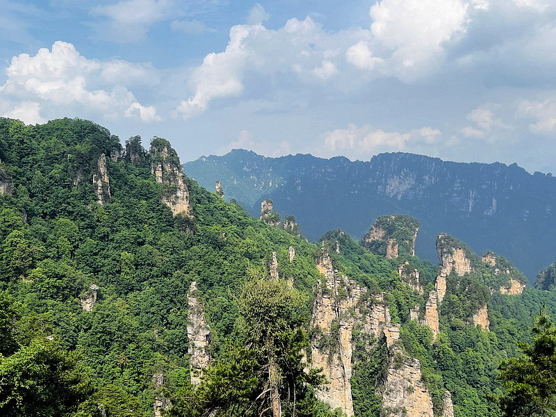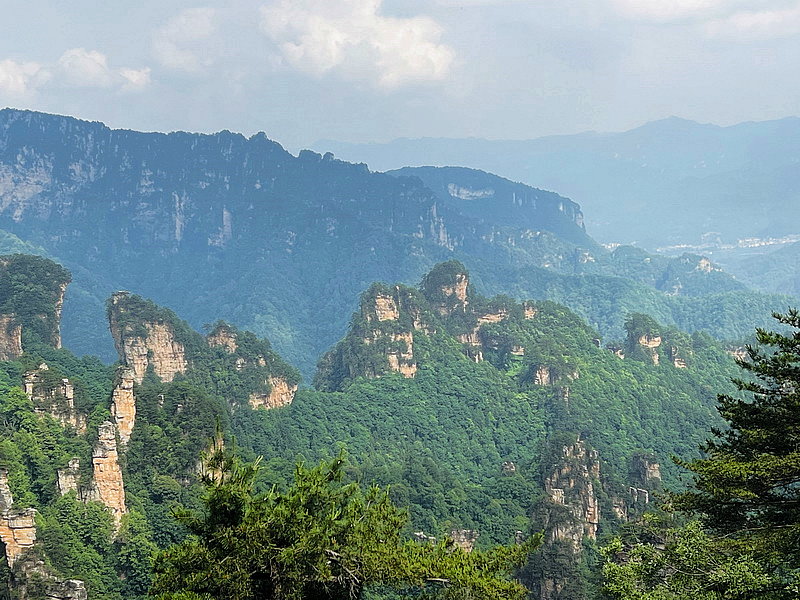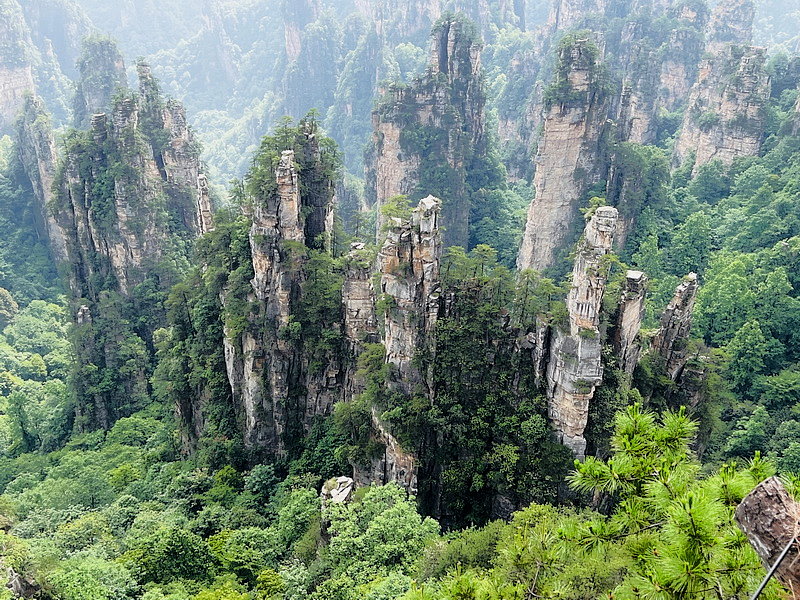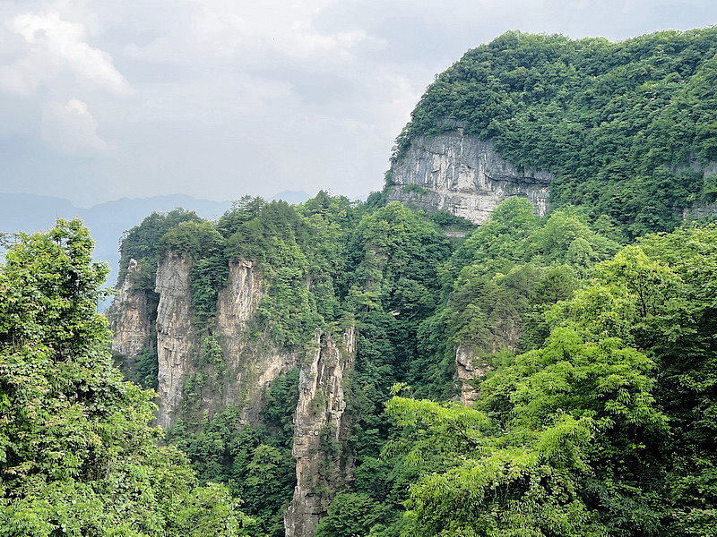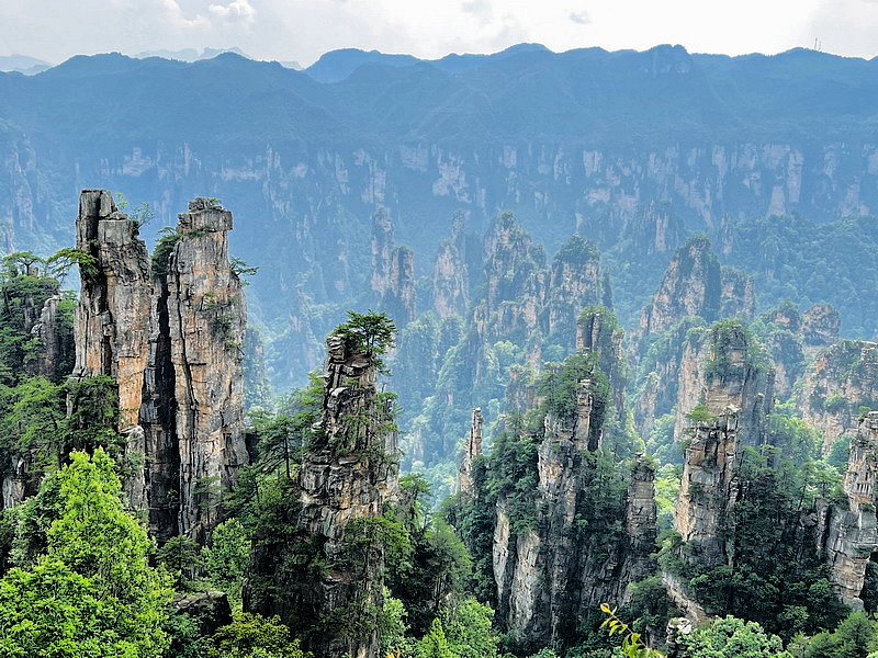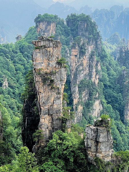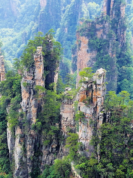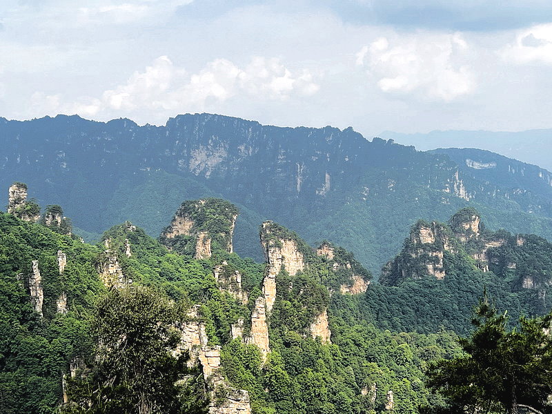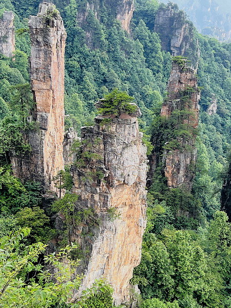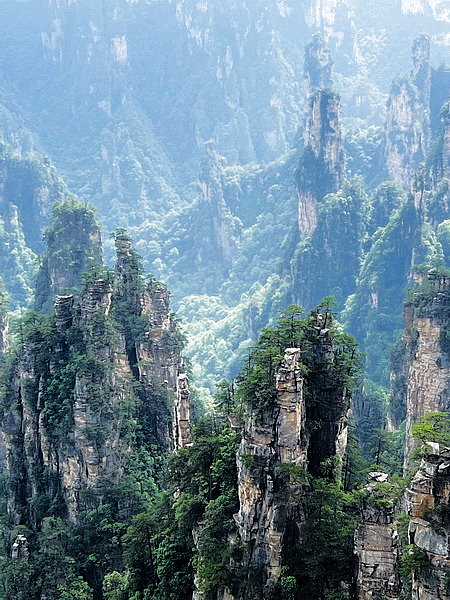 只有親眼見到挺拔兀立的天子山才明白為什麼這裡被戲稱為「擴大的盆景,縮小的仙境」。大面積集中的石峰拔地而起,直聳雲霄,家中的盆景正如眼前直挺的石峰一般,孤立而又不失韻味,面積卻不能與天子山相提並論,這就是「擴大的盆景」。