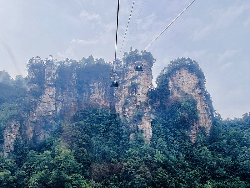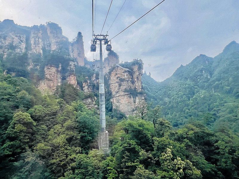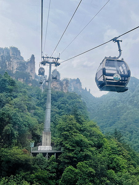 天子山索道斜線長2084米,高差692米,有著「中國十佳旅遊索道」美譽。