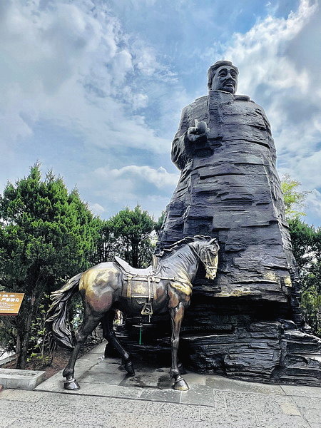 D6午餐後直奔賀龍公園,坐落在1200公尺的千層岩左側,公園內屹立在"雲青岩"上的賀龍銅像與大自然連為一體,形成獨特的藝術風格,這是中國近百年塑造的最大的銅像,身旁一匹戰馬,昂起頭顱,似乎在等待主人揚鞭踏上征途。