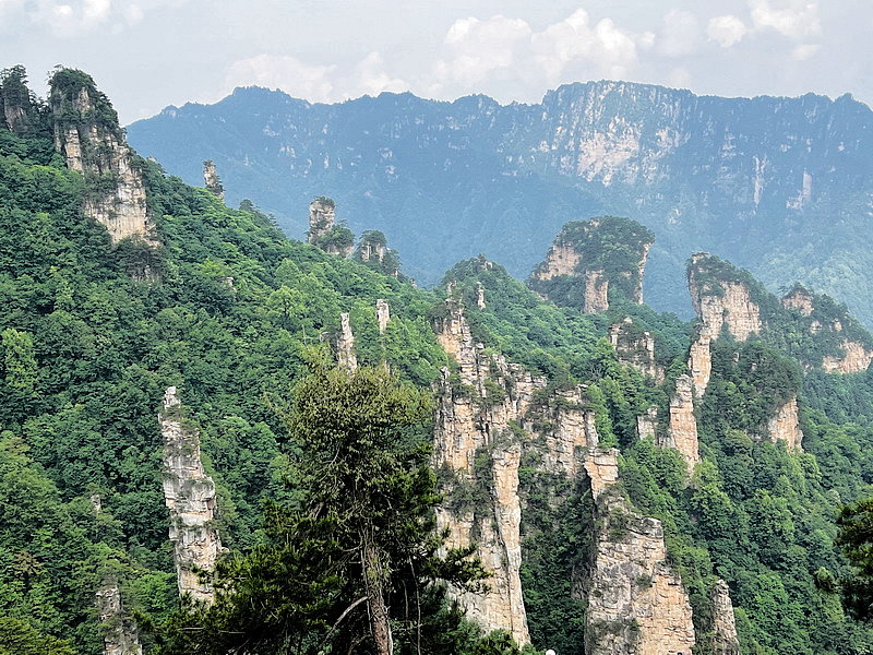 天子山景區包括神堂灣、點將台、賀龍公園、雲青岩、御筆峰、仙女獻花、登天子閣觀峰林全貌、武士訓馬;但我們團遊只排(賀龍公園、御筆峰、西海石林)。