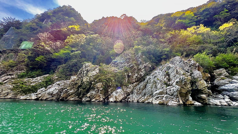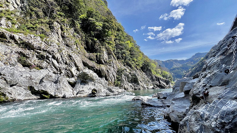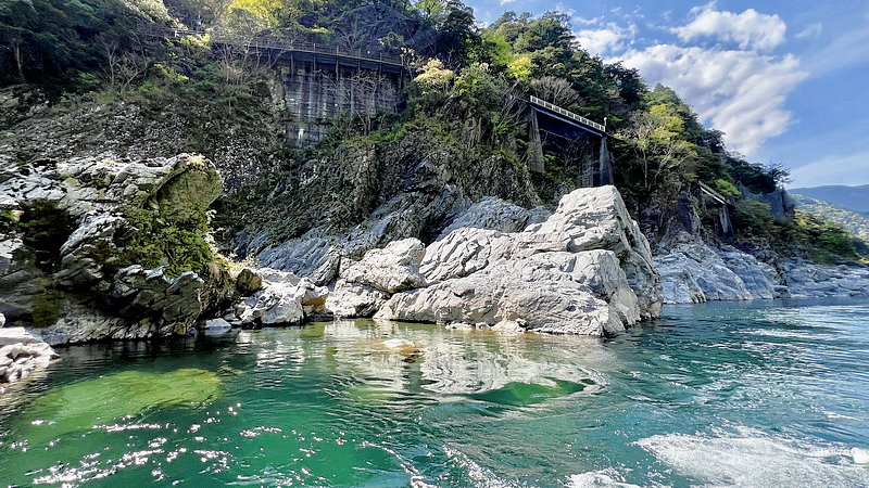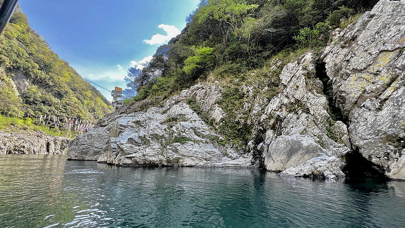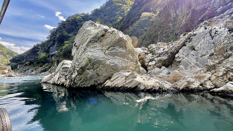 搭乘遊覽船遊覽吉野川,可一面在溪谷中滑行前進,一面欣賞大自然手工打造的壯觀景色,近距離觀賞聳立在船兩側,宛如大理石雕刻般的結晶片岩。