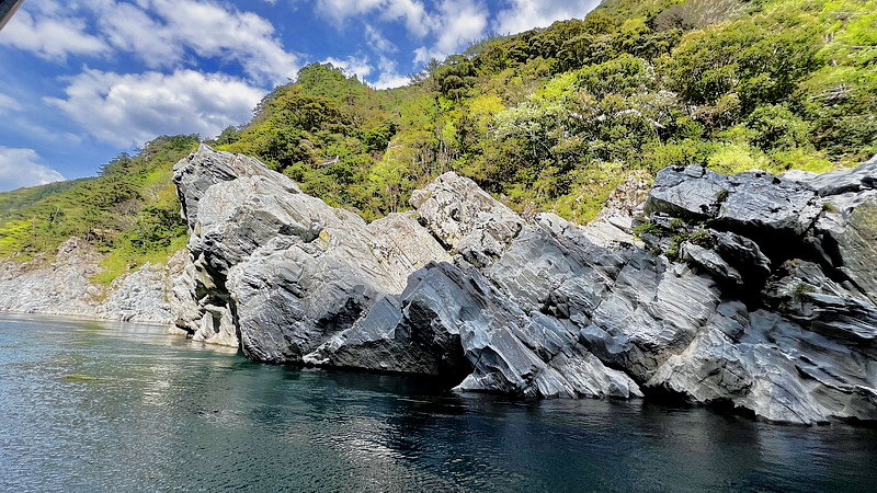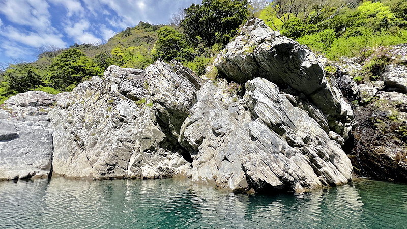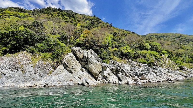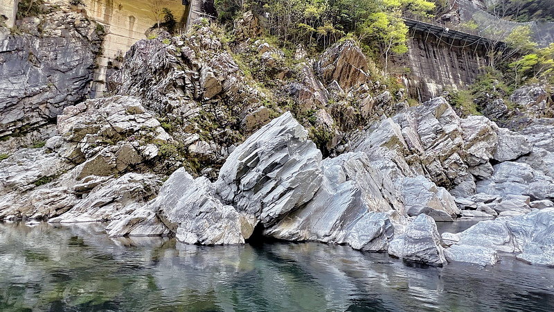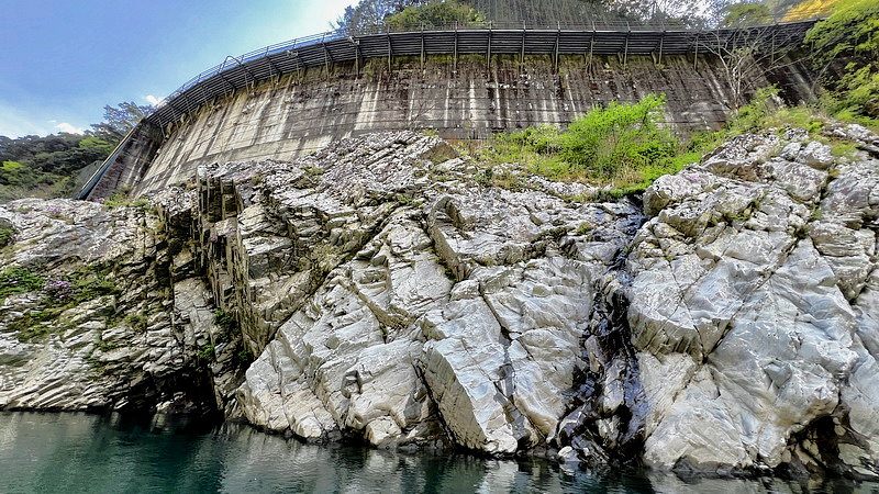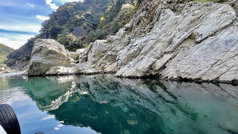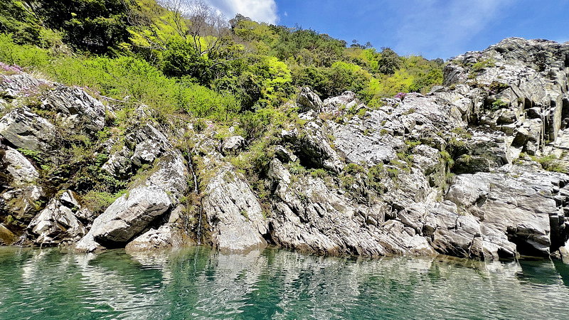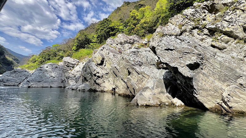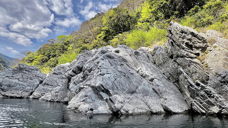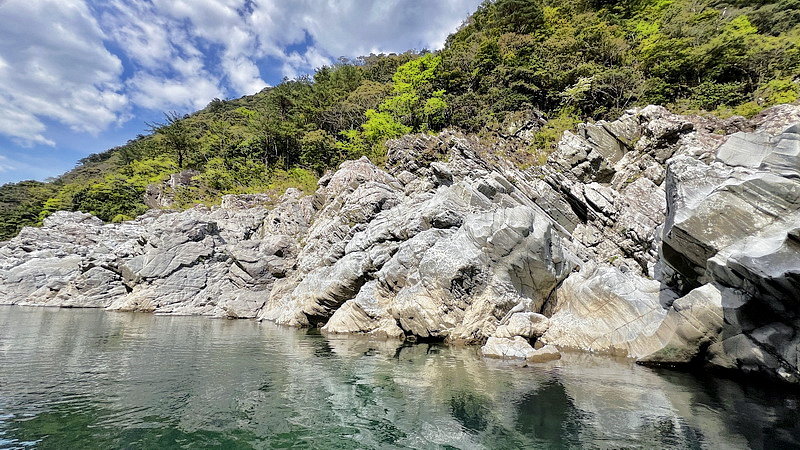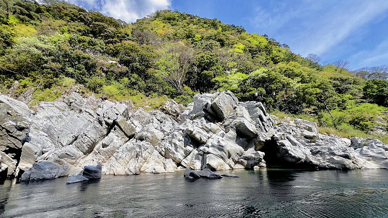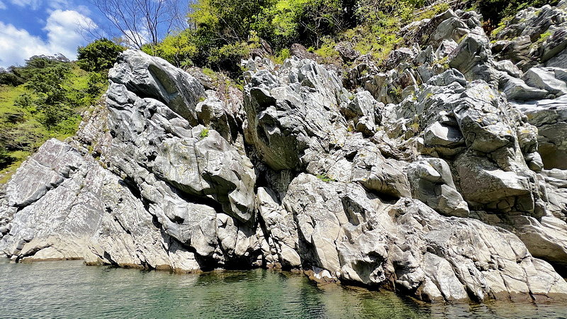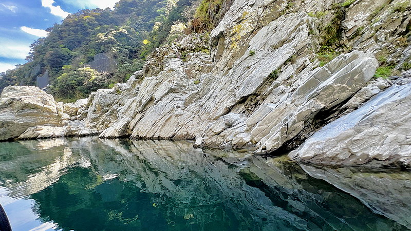 搭乘遊船可近距離觀賞峽谷美麗的岩石,以及被指定為國家天然紀念物的「含礫片岩」。