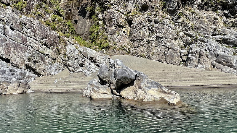 觀光遊覽船在溪谷中前進,我忙著欣賞拍攝大自然手工打造的石頭景觀。