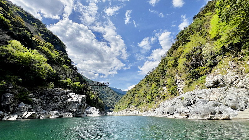 德島祖谷地區為日本三大秘境之一,大步危是進入此處的門戶,兩億年前形成的巨石矗立在峽谷兩側,搭乘大步危峽觀光遊覽船穿梭峽谷之間已有百年歷史,如今是遊客至四國旅遊必訪的德島景點,每年四、五月高掛的鯉魚旗成了山谷中的期間限定美景。