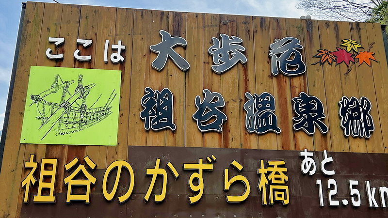 搭車時回到商店入口處的招牌,搭乘大步危峽觀光遊覽船可以欣賞千年峽谷山壁奇景。