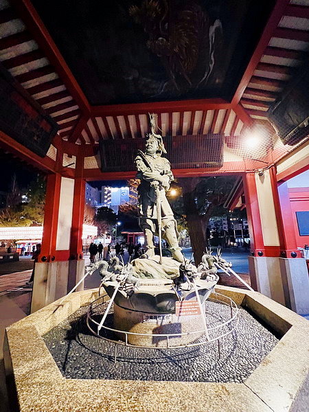 日本在參拜前都會先洗手,洗淨身心,在香爐旁邊就是手水舍。淺草寺的水手舍很特別,八卦造型水池中間是一尊沙竭羅龍王雕像,底部還有8隻小龍,不仔細看,絕對猜不到這是水手舍,而沙竭羅龍王又稱海龍王,主管下雨被視作祈雨之神。