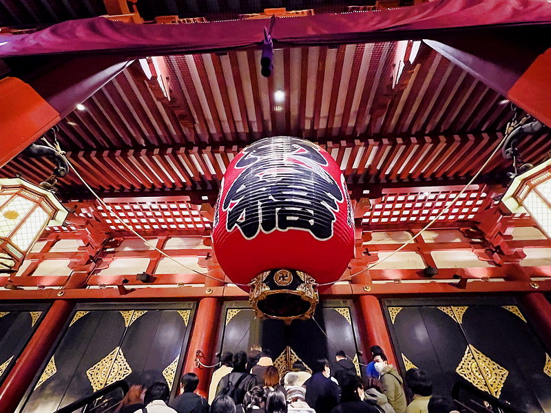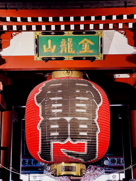 雷門是淺草寺的正門,正式名稱為「風雷神門」。門中央懸掛的紅燈籠高3.9米,直徑3.3米,重約700公斤。紅色象徵好運,帶給遊客活力。作為雷門的象徵,它也是拍攝紀念照片的熱門地點。在1960年,由松下電器創始人松下幸之助捐贈重建。巨大燈籠的下方有松下幸之助的提名。