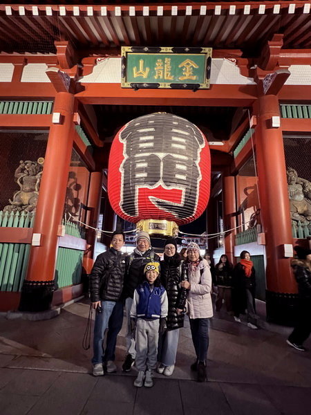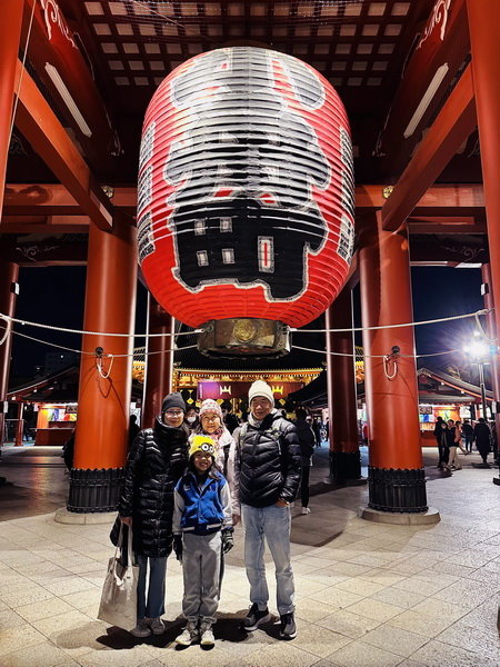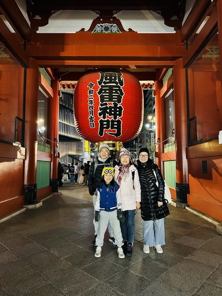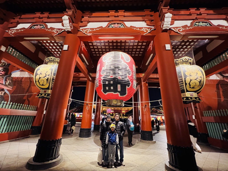 雷門是淺草寺的正門,也是淺草的標誌性旅遊景點。門中央懸掛著一盞高3.9公尺、重700公斤的紅色燈籠,氣勢磅礴,令遊客嘆為觀止。燈籠上寫著"雷門",背面則寫著"風雷神門"。因為我們是從內往外走,所以先看到"風雷神門"。